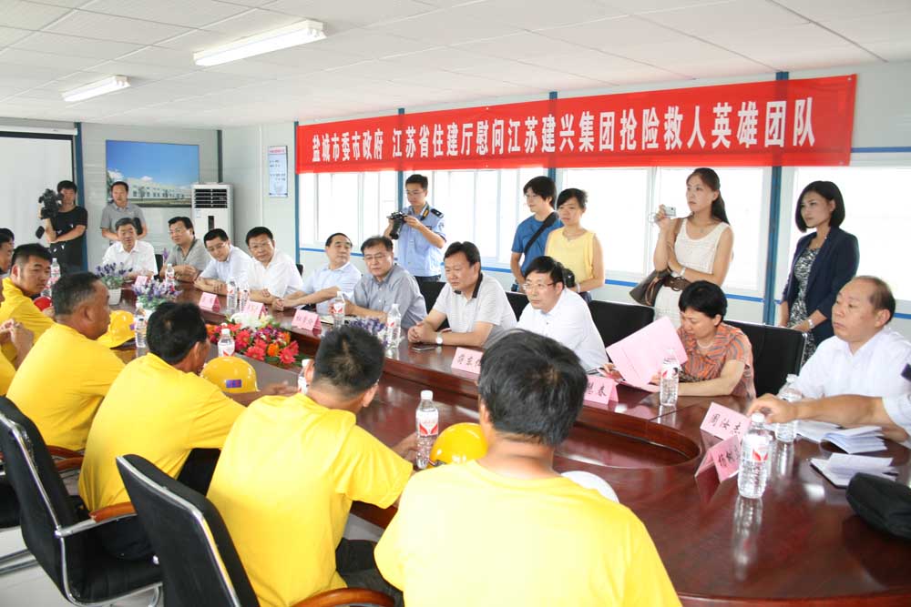 8月4日上午,由副市長(zhǎng)王榮代表中共鹽城市委、鹽城市人民政府,率領(lǐng)市委宣傳部、市文明辦、市公安局、市見義勇為基金會(huì)、市建設(shè)局、市人社局,以及鹽都區(qū)相關(guān)負(fù)責(zé)人一行二十余人的慰問團(tuán)抵達(dá)北京,看望并慰問7.21我公司在京搶險(xiǎn)救人的農(nóng)民工團(tuán)隊(duì),集團(tuán)公司黨委書記、董事長(zhǎng)、總經(jīng)理孫健強(qiáng)代表公司隨團(tuán)赴京慰問。