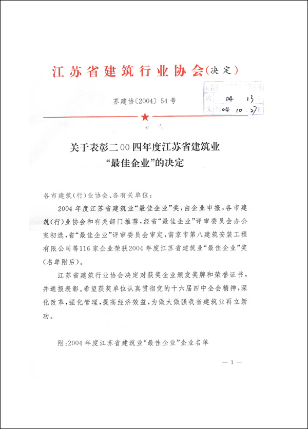 2004優(yōu)秀勞務(wù)企業(yè)