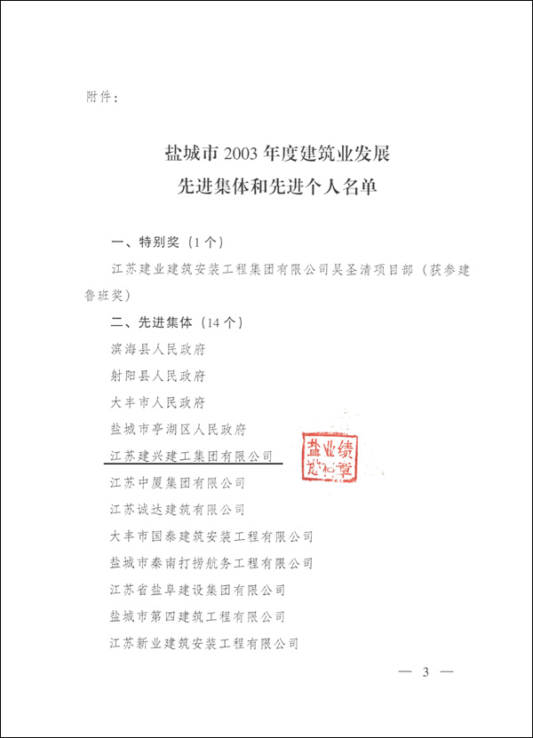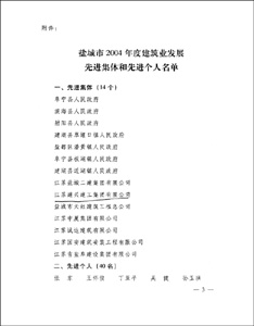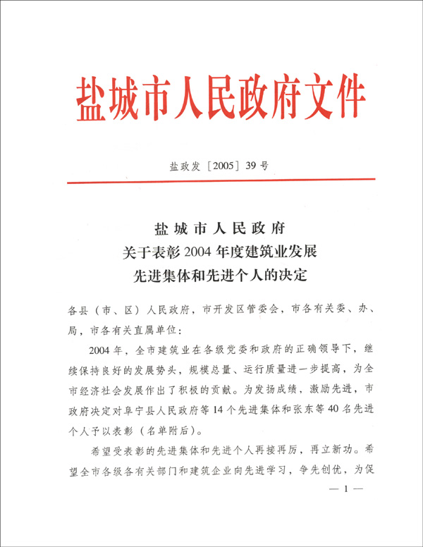 鹽城市人民政府關(guān)于表彰2004年建筑業(yè)發(fā)展先進(jìn)集體和先進(jìn)個(gè)人的決定